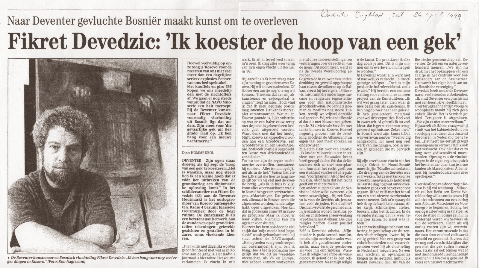 “lk vlucht in m’n werk. Er zit al te veel leed russen m'n oren. Ik krijg alles weer terug van m’n eigen vlucht uit Bosnië in '92. Mijn religie is de kunst. Die praktiseer ik elke dag. Dit is mijn manier om te overleven, om niet gek te worden."